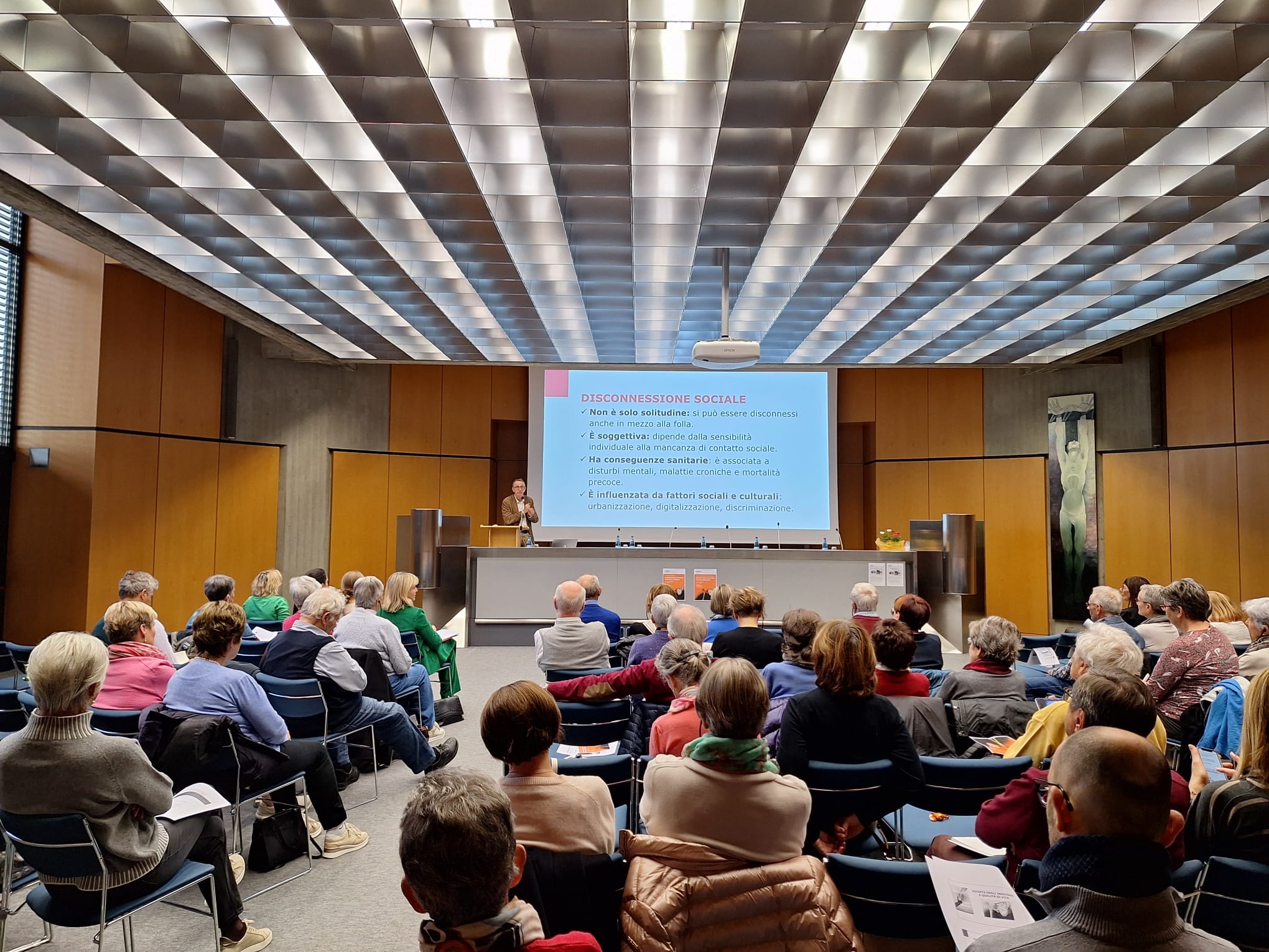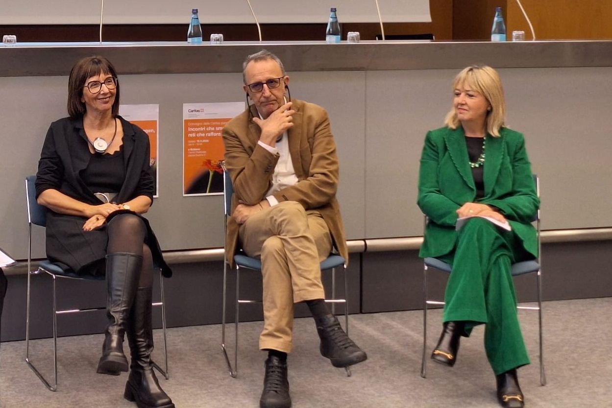Impulse gaben alsdann Ennio Ripamonti, Psychosozialwissenschaftler aus Mailand, und Ingrid Böhler, Expertin für sozialräumliches Handeln aus Vorarlberg. Ripamonti hob die Bedeutung neuer Kompetenzen und einer „vernetzenden Intelligenz“ hervor: „Der Aufbau sozialer Bindungen in einer Gemeinschaft ist komplex und folgt keinem einfachen Rezept. Dafür braucht es Menschen, die Brücken schlagen und Beziehungen zwischen Schule, Sozialdiensten, Pfarrei und anderen Akteuren knüpfen, damit tragfähige Netzwerke entstehen.“ Böhler sprach über Einsamkeit und lud zu einem Perspektivenwechsel hin zur Geborgenheit ein: „Viele Menschen fühlen sich einsam und haben keinen Zugang zu Gemeinschaften. Netzwerkarbeit kann hier Brücken bauen.“