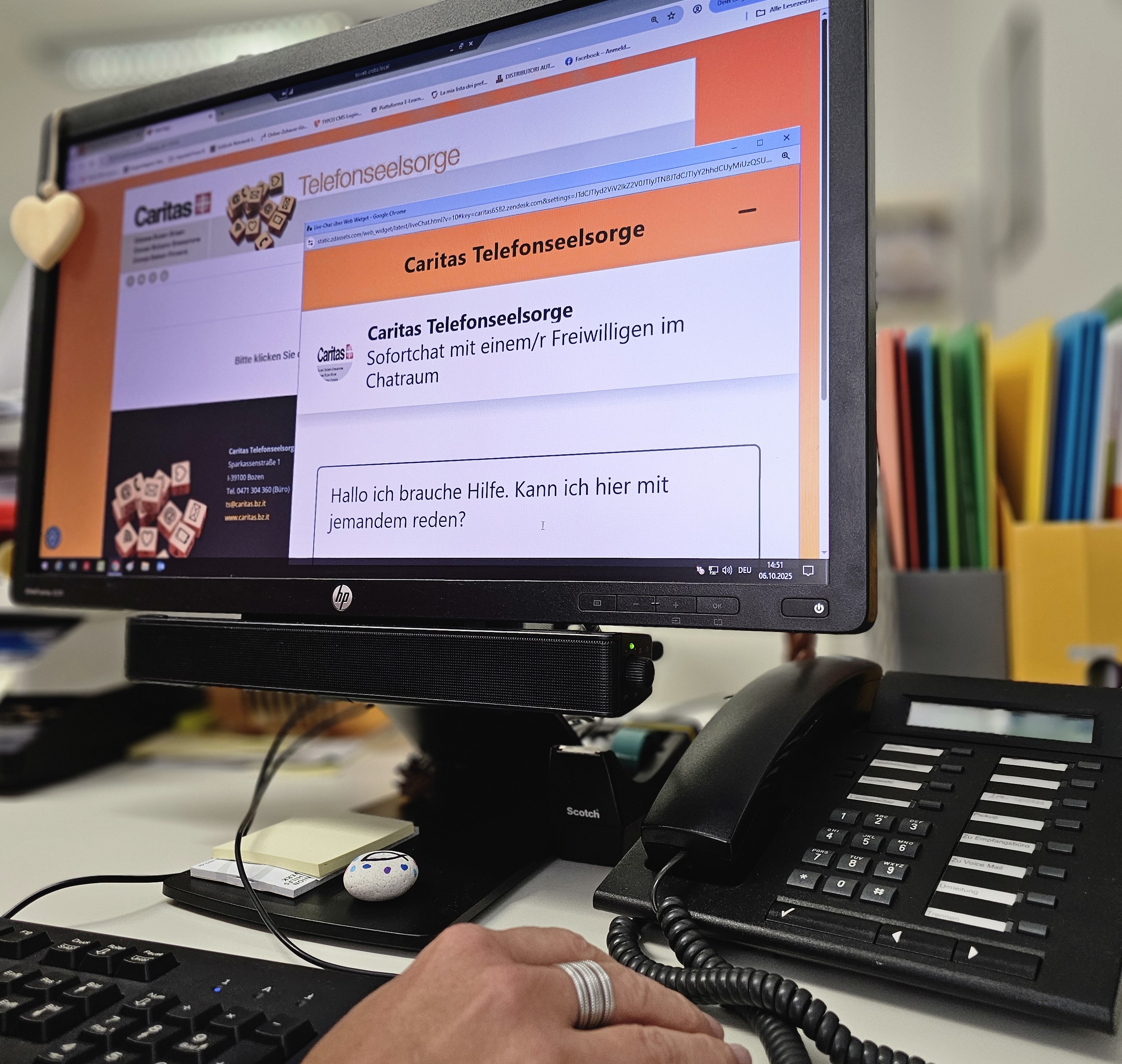 Der Chatraum der Telefonseelsorge ist niederschwellig kann von Montag bis Donnerstag zwischen 18 und 21 Uhr über die Homepage der Telefonseelsorge telefonseelsorge.bz.it genutzt werden. Die Mailberatung sowie der Telefondienst stehen weiterhin rund um die Uhr und an allen Tagen zur Verfügung.