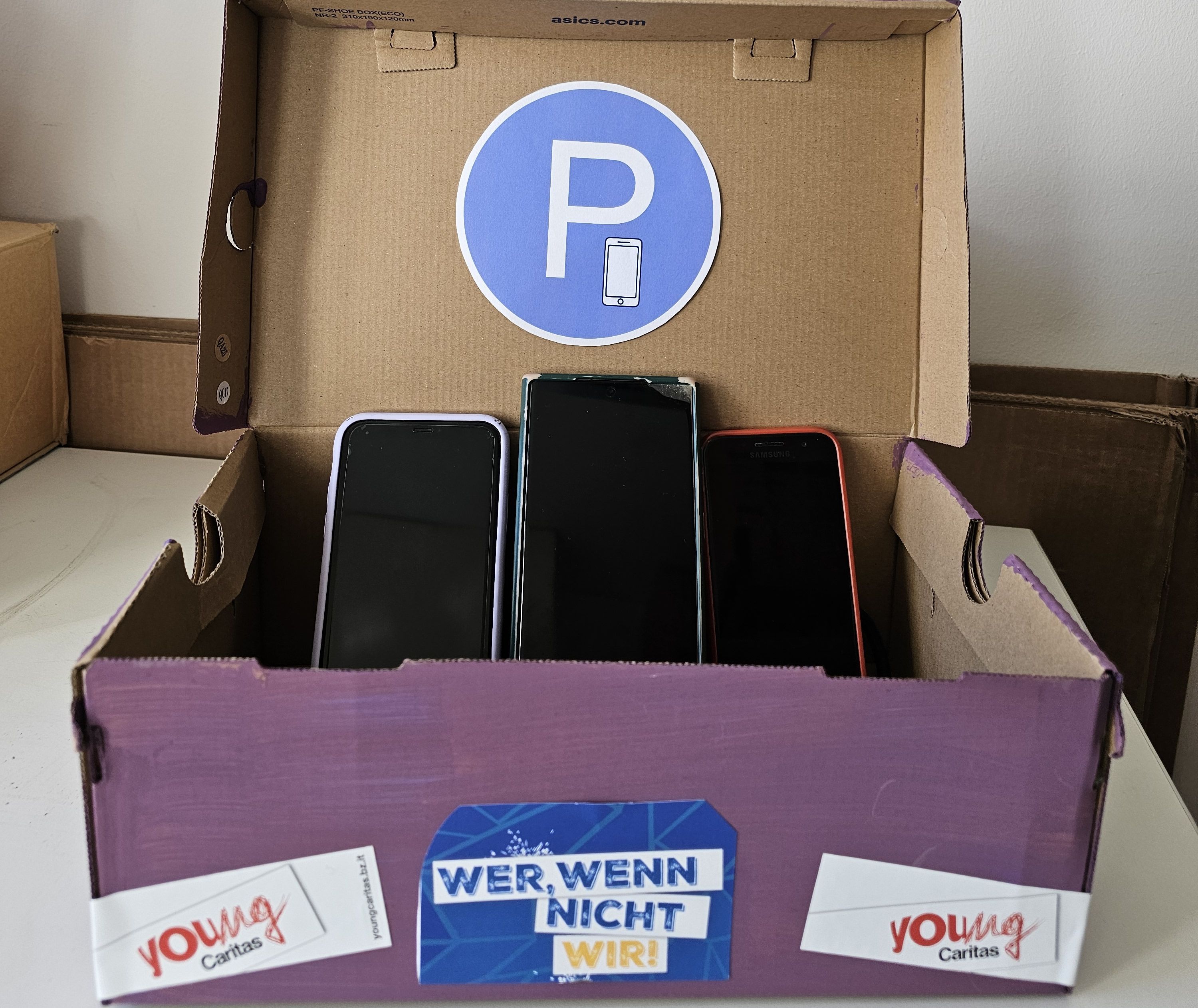 Damit die Offline-Zeit gelingt, werden alle Smartphones währenddessen in einem „Handyparkplatz“ aufbewahrt.