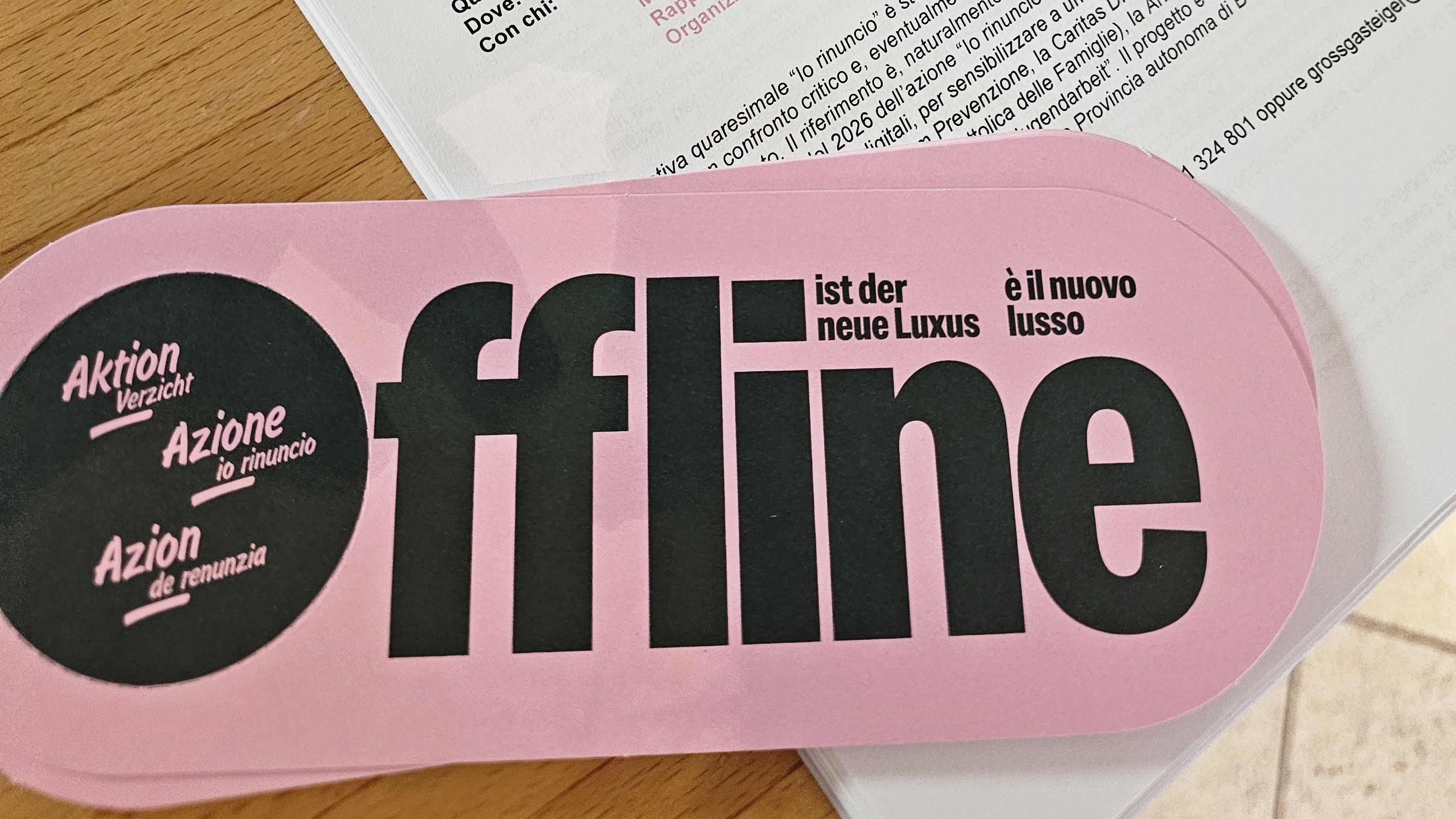 Il materiale realizzato appositamente per l’iniziativa di quest’anno - poster, segnalibri e i cosiddetti “door hanger”, cartellini che si appendono alle maniglie delle porte – vuole ricordare durante la Quaresima quanto sia importante per la propria salute e il proprio benessere, trascorrere del tempo lontano dagli schermi. Studi neuro scientifici mostrano come smartphone e social media, pur innescando la produzione di dopamina, non favoriscano una soddisfazione duratura. La vera gratificazione deriva dalla produzione di serotonina, endorfine e ossitocina – stimolate da attività come il movimento, le relazioni sociali autentiche, la creatività o le esperienze nella natura.